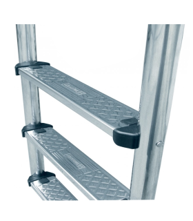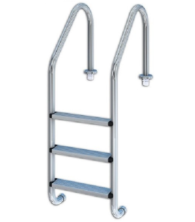 Escalera STANDARD Escaleras con pasamanos modelo Standard, para piscinas enterradas, fabricadas en tubo Ø 43mm de acero inoxidable acabado pulido brillante. Peldaños en acero inoxidable y plástico. Su cuidado...